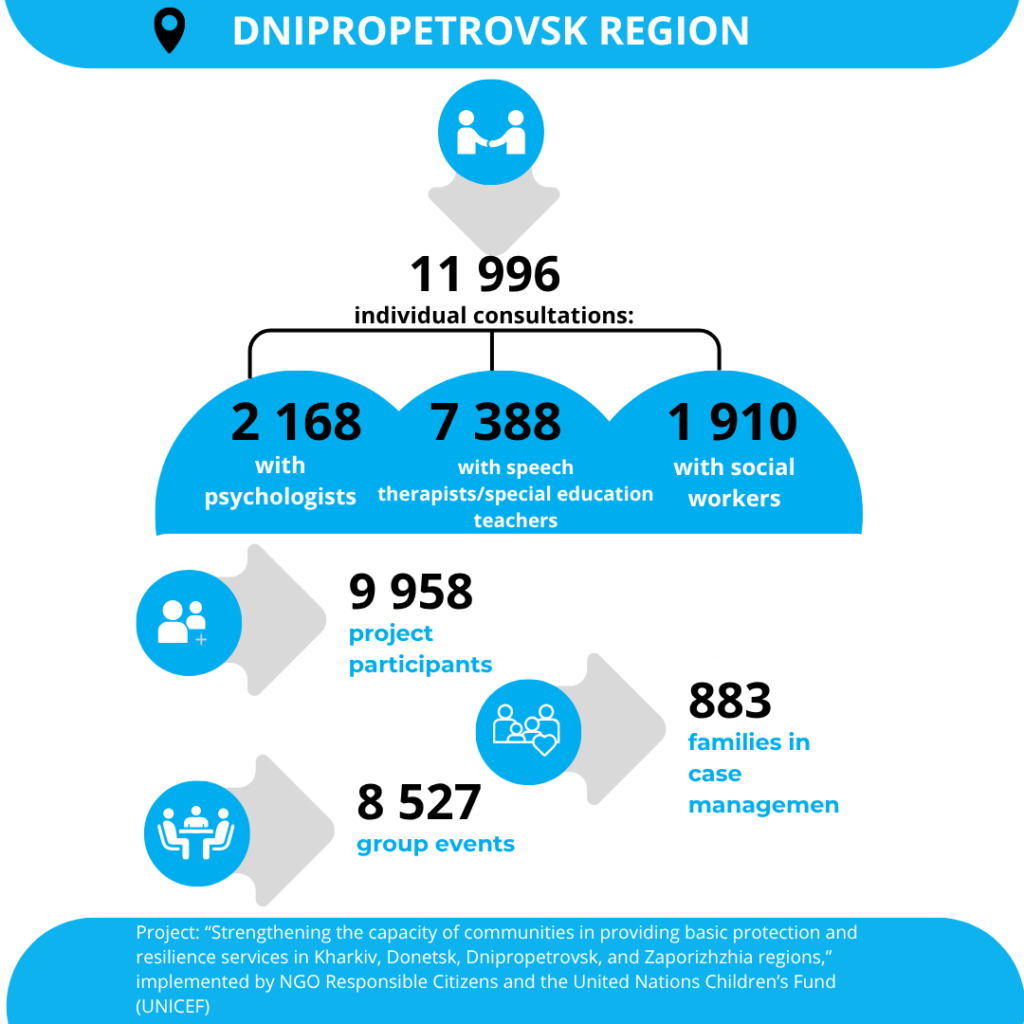 The project is implemented by Responsible Citizens in partnership with UNICEF Ukraine and with the support of the Government of the United States of America. Its goal is not one-time aid but systematic support through psychological, social, corrective services and individual case management.