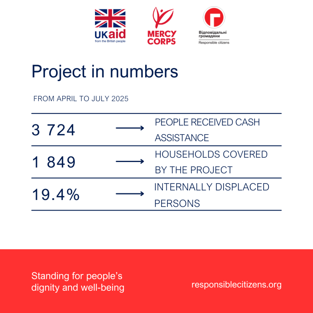 The NGO “Responsible Citizens,” in partnership with Mercy Corps and with funding from the UK government, has successfully completed another stage of the project aimed at supporting people affected by the war.