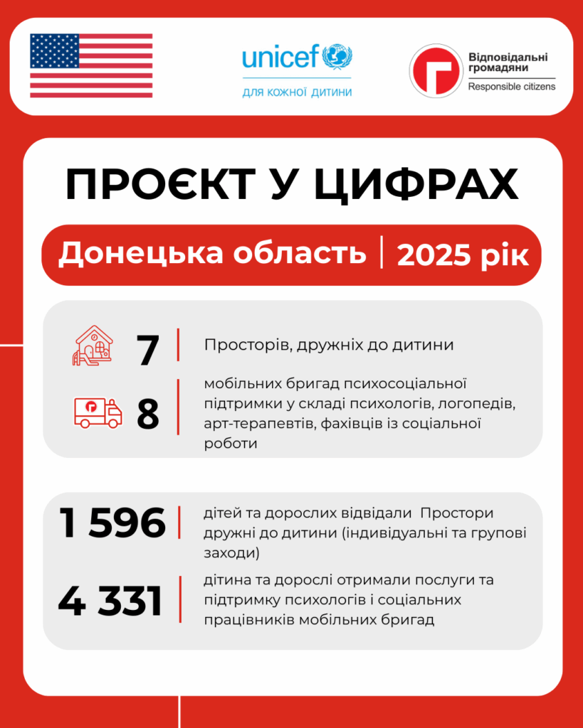 2025 рік у Донецькій області — це постійна робота в умовах близькості до лінії фронту, частих переміщень і високого рівня психологічної напруги серед дітей та дорослих. У громадах, де стабільність — радше виняток, ніж норма, Простори, дружні до дитини, стали місцем безпеки, передбачуваності й підтримки.