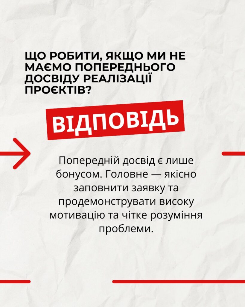 Програма мінігрантів відкриває можливості для громадських ініціатив, які прагнуть реагувати на актуальні потреби своїх громад. Щоб зробити процес подачі заявки зрозумілим і доступним, ми зібрали відповіді на найпоширеніші запитання від учасників програми.