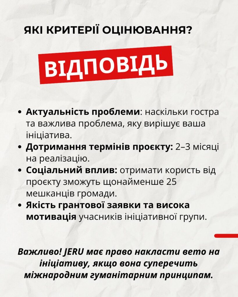 Звертаємо увагу, що термін подачі заявок на участь у програмі мінігрантів продовжено до 12 січня 2026 року. Це дає додатковий час для доопрацювання ідей та підготовки ініціатив, спрямованих на вирішення локальних викликів у громадах.